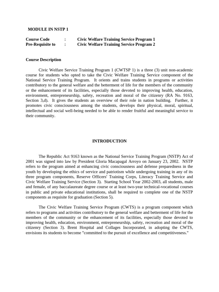 BHCI NSTP CWTS 1 2 Modules (1) PDF Human Rights Justice