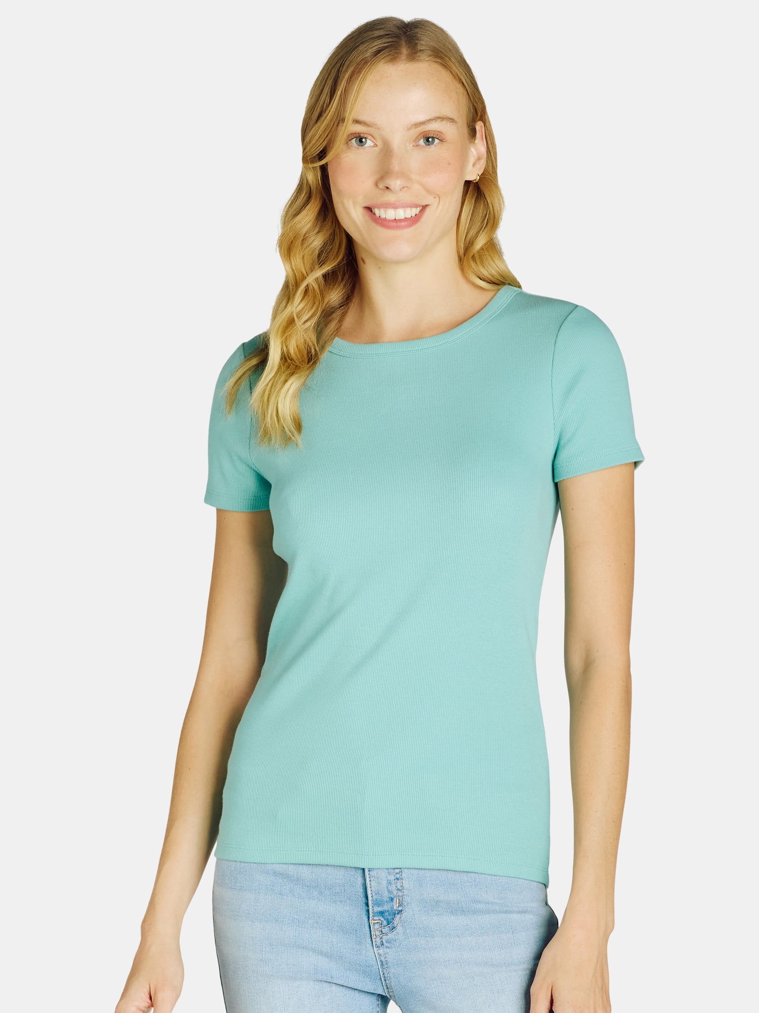 Time and Tru Women #39 s Short Sleeve Rib Tee Sizes XS XXXL Walmart com