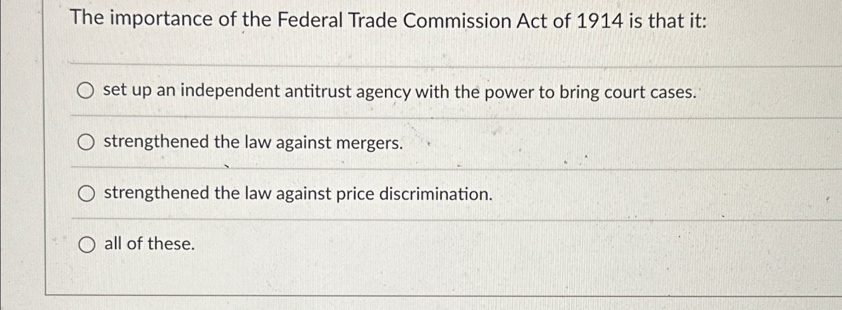 Solved The importance of the Federal Trade Commission Act of Chegg com