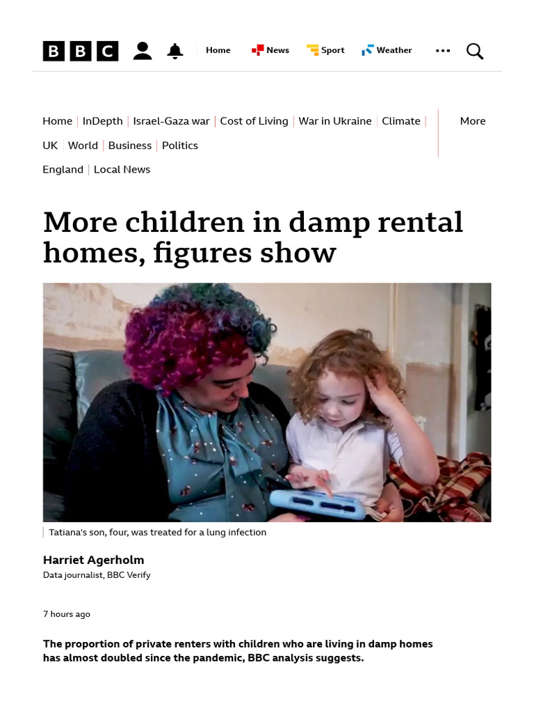 More Children Living in Damp Rental Homes in England Figures Say BBC