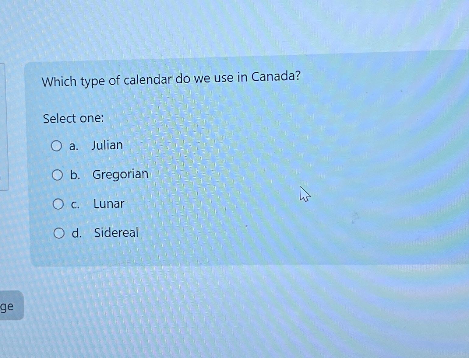 Solved Which type of calendar do we use in Canada?Select Chegg com