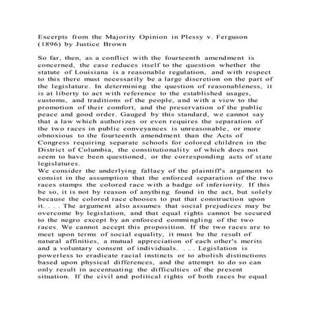 Excerpts from the Majority Opinion in Plessy v Ferguson (1896) by J PDF
