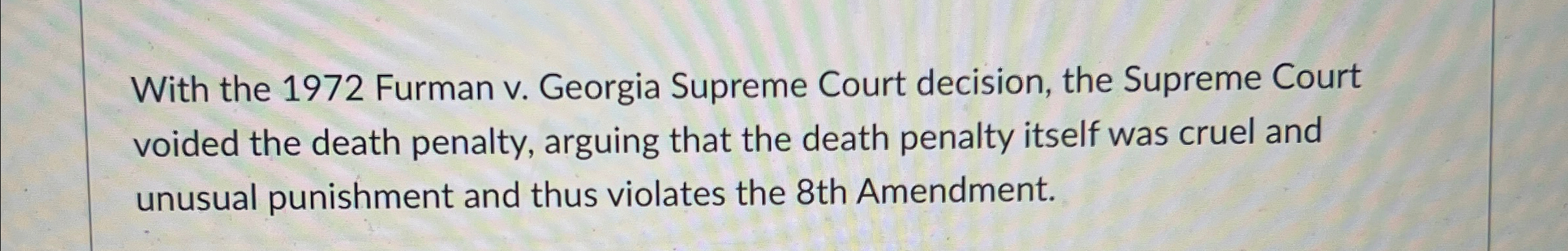 Solved With the 1972 Furman v Georgia Supreme Court Chegg com