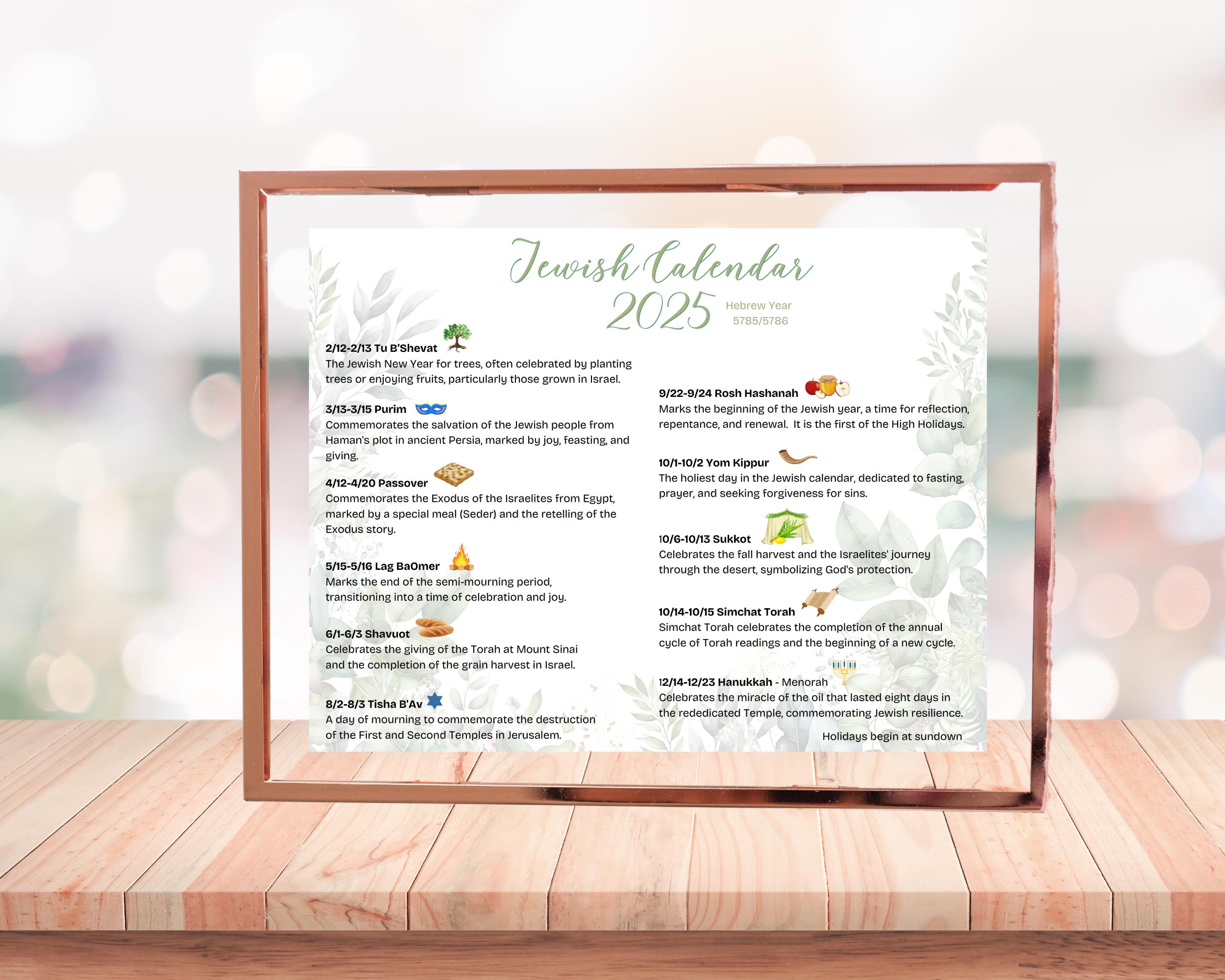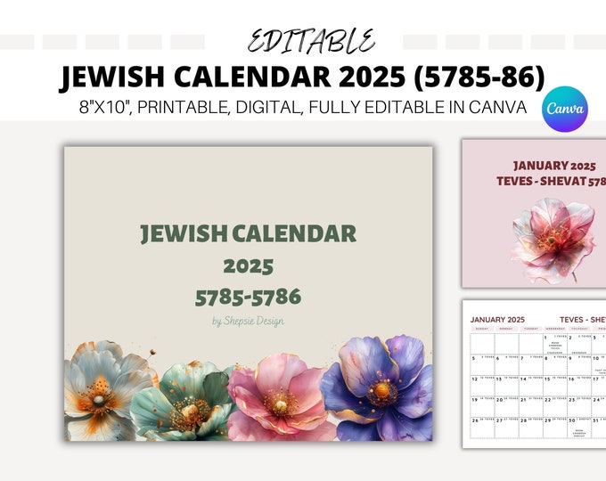 EDITABLE Jewish Calendar 2025 Hebrew Calendar 5786 Printable Jewish