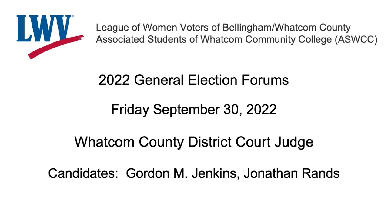 Whatcom County District Court Judge A LWVBWC ASWCC Voter Forum