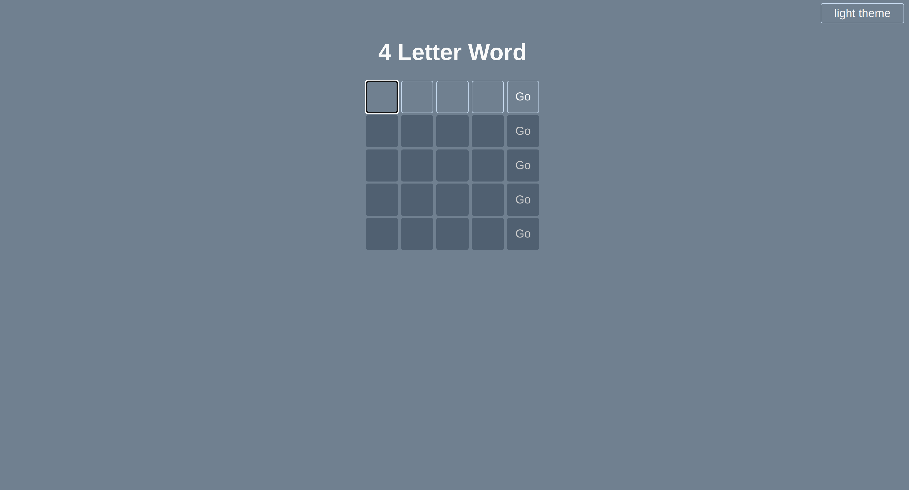 GitHub martine dowden/4 letters: guess the 4 letter word in 5 tries