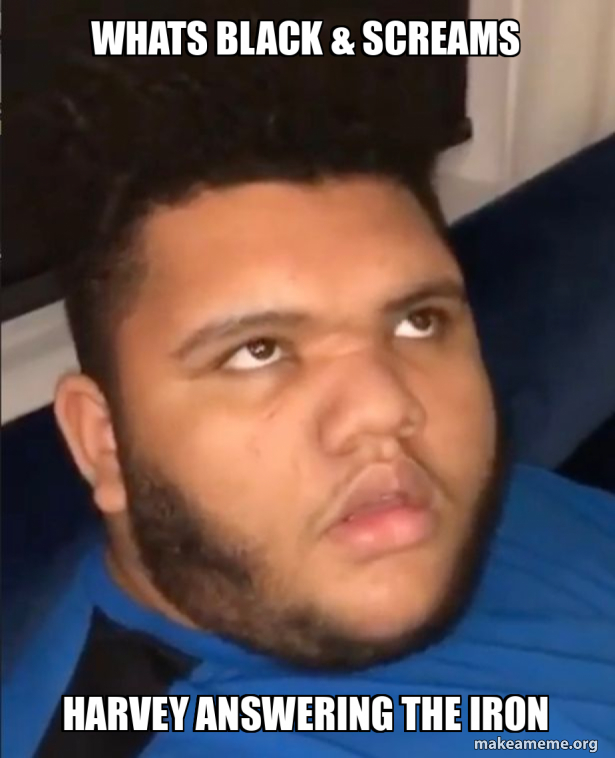 Whats black screams Harvey answering thE iron Meme Generator