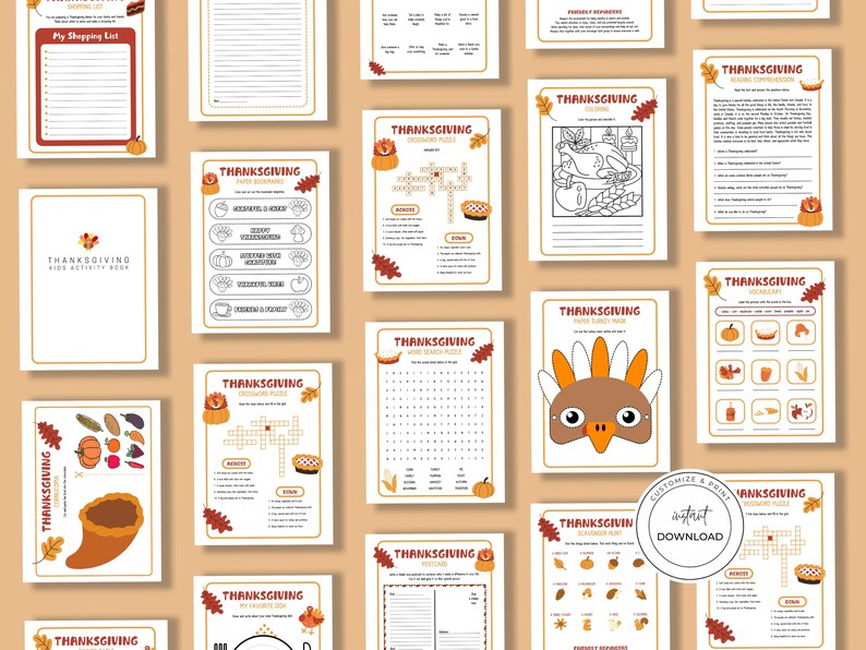 Thanksgiving Kids Activity Book 30 Pages of Printable Fun Fall