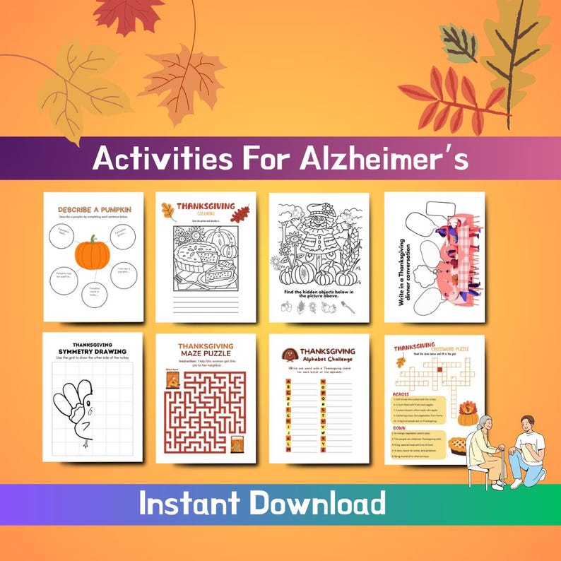 Thanksgiving Dementia Worksheets for SeniorFall Activities