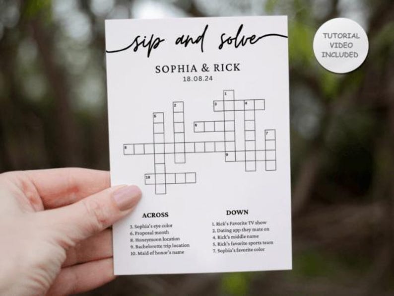 Custom Wedding Crossword Puzzle Game Small and Minimalist Game