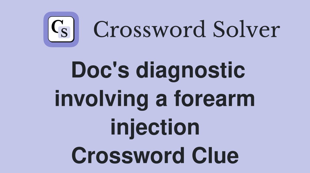 Doc #39 s diagnostic involving a forearm injection Crossword Clue Answers