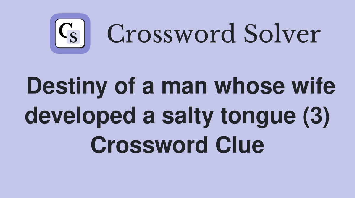 Destiny of a man whose wife developed a salty tongue (3) Crossword