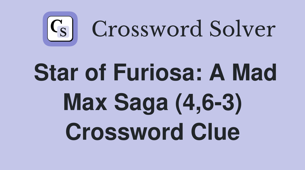 Star of Furiosa: A Mad Max Saga (4 6 3) Crossword Clue Answers