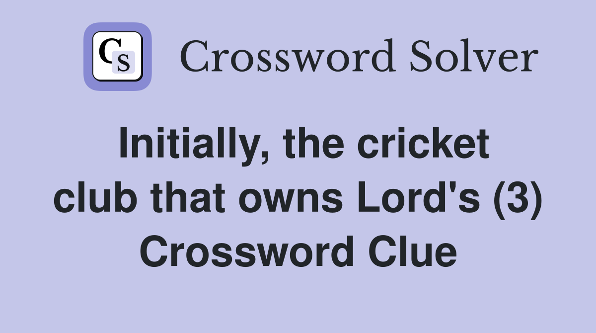 Initially the cricket club that owns Lord #39 s (3) Crossword Clue
