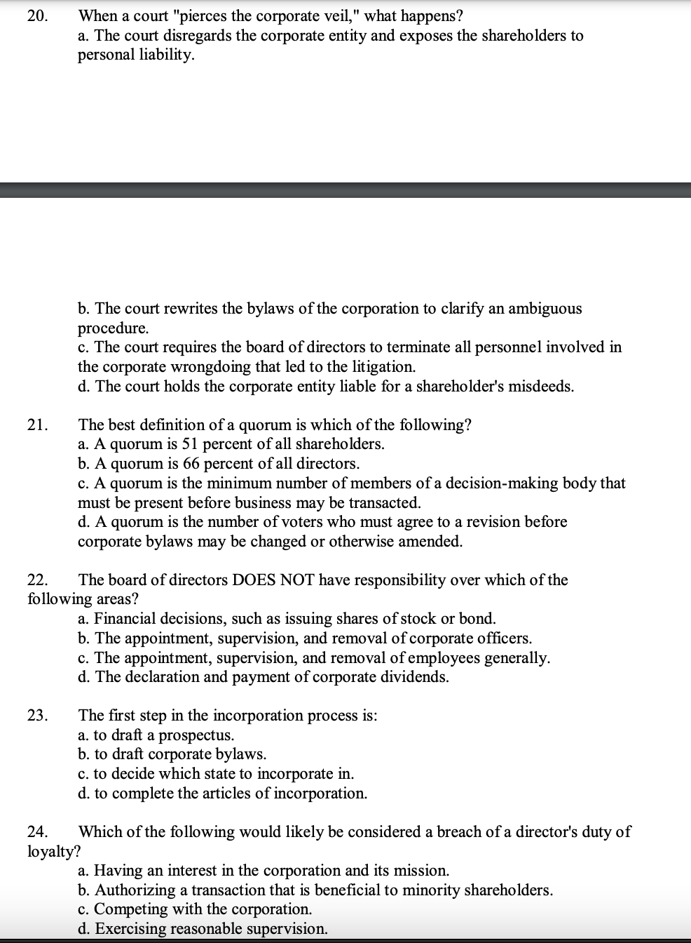 Solved 20 When a court quot pierces the corporate veil quot what Chegg com