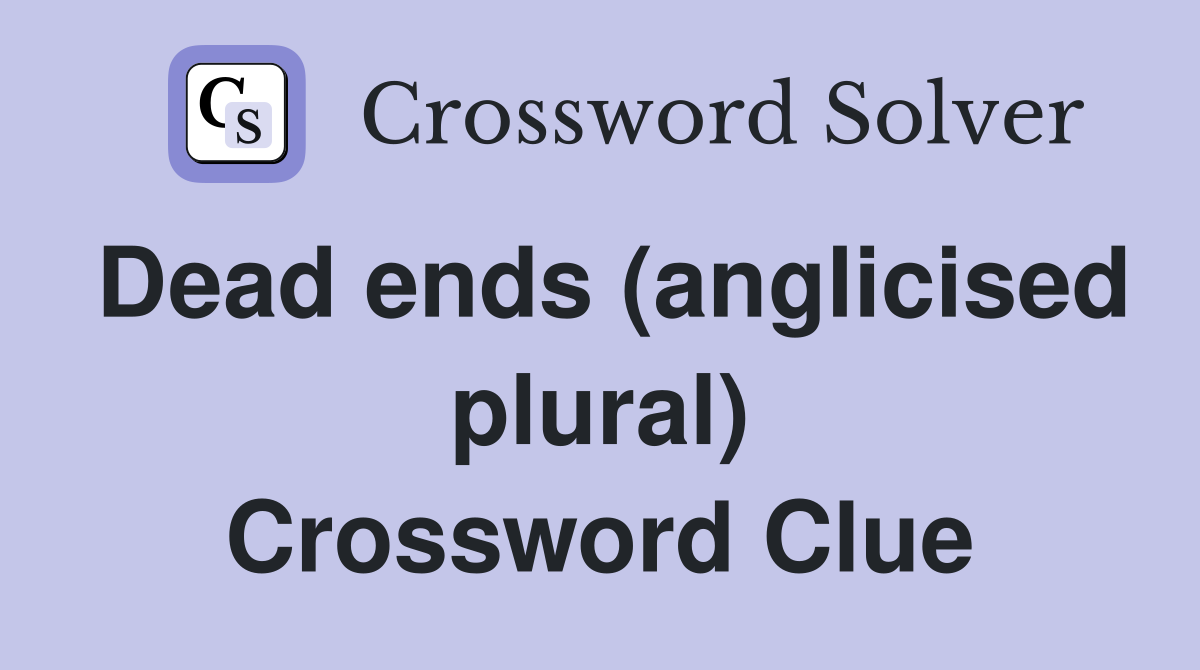 Dead ends (anglicised plural) Crossword Clue Answers Crossword Solver