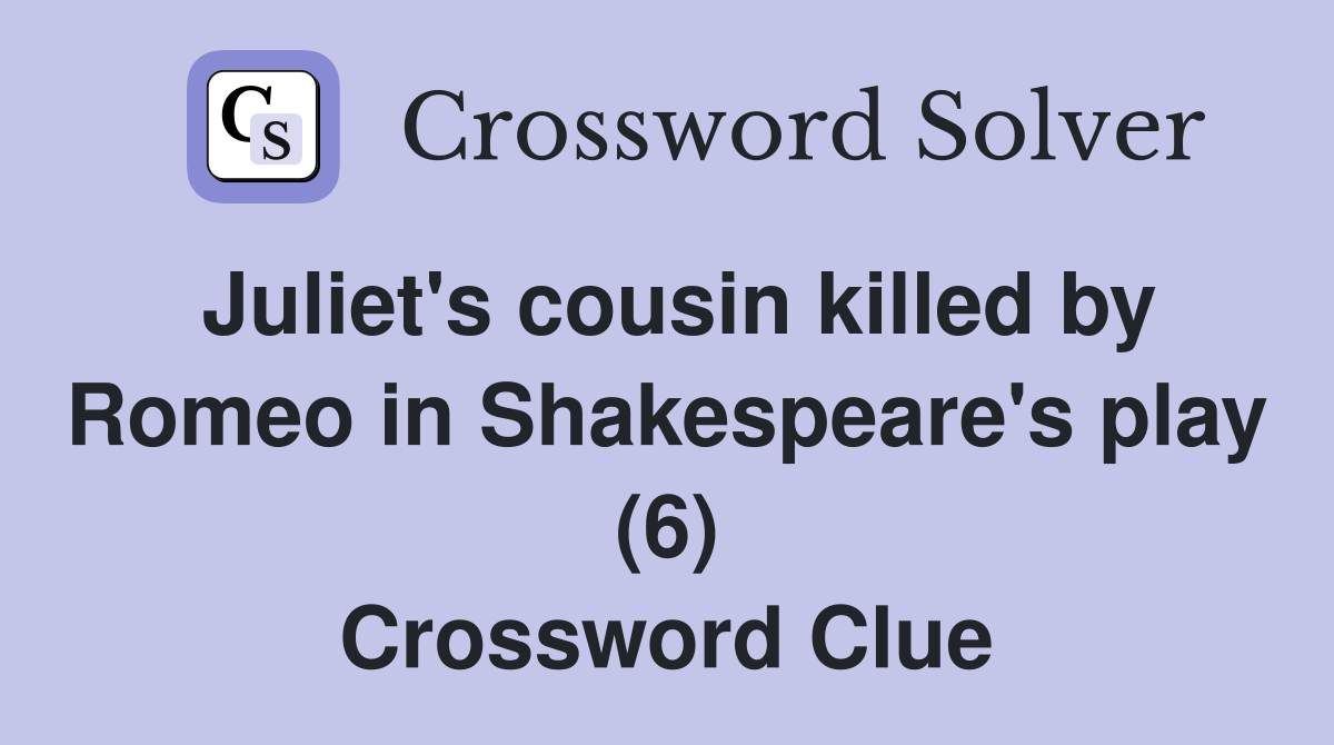 Juliet #39 s cousin killed by Romeo in Shakespeare #39 s play (6) Crossword