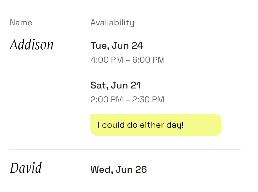 Whenever Works See when everyone is available
