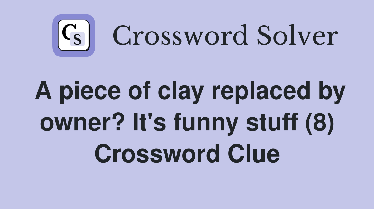 A piece of clay replaced by owner? It #39 s funny stuff (8) Crossword