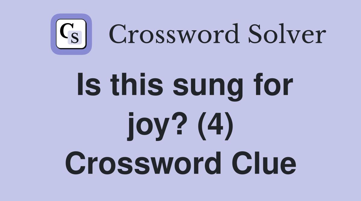 Is this sung for joy? (4) Crossword Clue Answers Crossword Solver