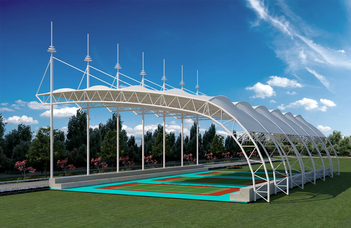 Ptfe Tension Membrane Basketball Court Field Tent Architectural Tensile