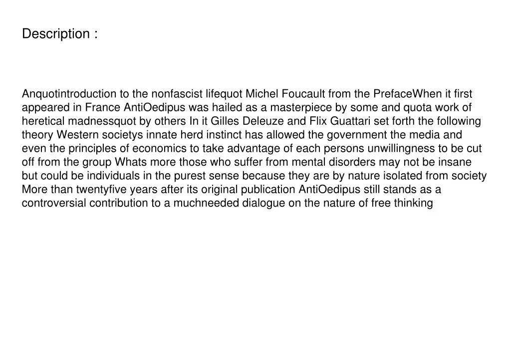 PPT Ebook download Anti Oedipus Capitalism and Schizophrenia Penguin