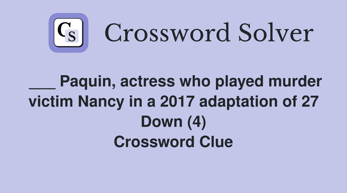 Paquin actress who played murder victim Nancy in a 2017 adaptation of