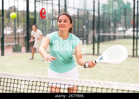 Two sports couples playing padel on the tennis court Stock Photo Alamy