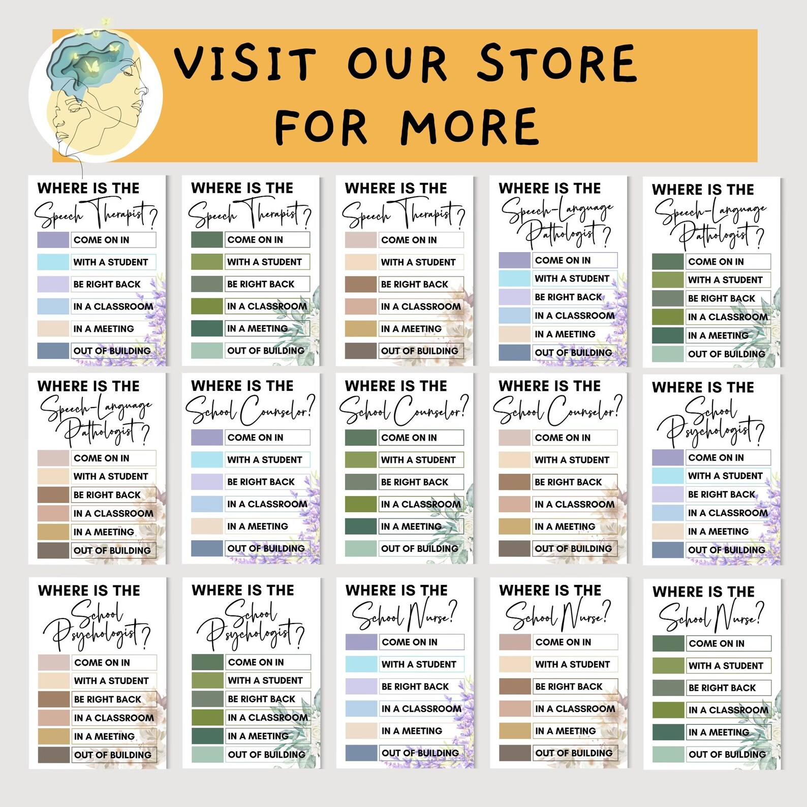 School Counselor Printable Door Sign Therapist Psychologist Classroom