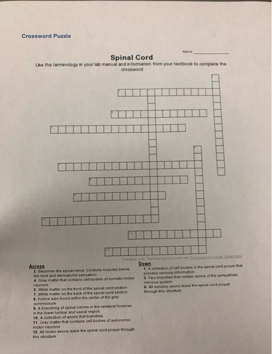 Crossword Puzzle Spinal Cord Use the terminology in Chegg com