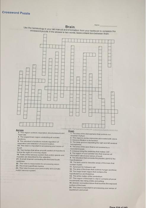 Solved 101 ex 14 brain ventricles meninges crossword Across Chegg com