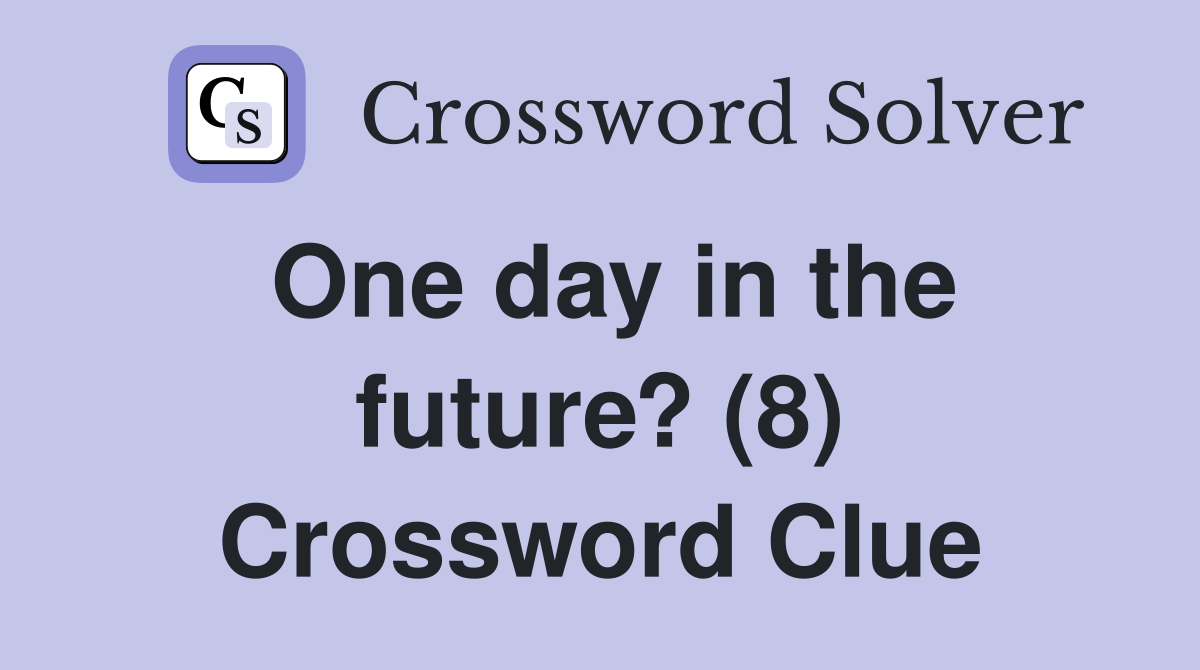 One day in the future? (8) Crossword Clue Answers Crossword Solver