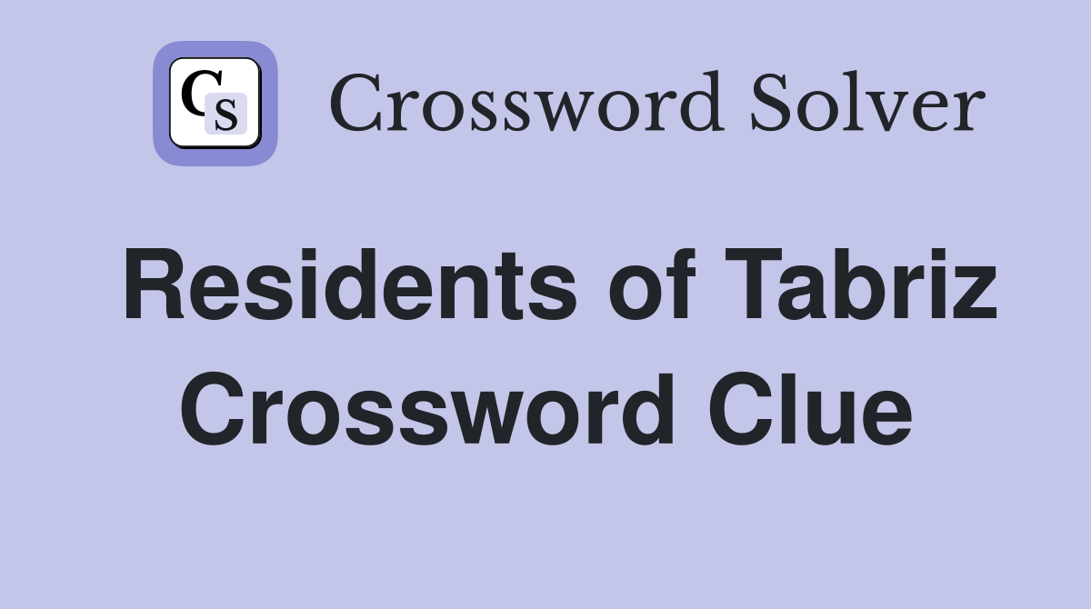 Residents of Tabriz Crossword Clue Answers Crossword Solver