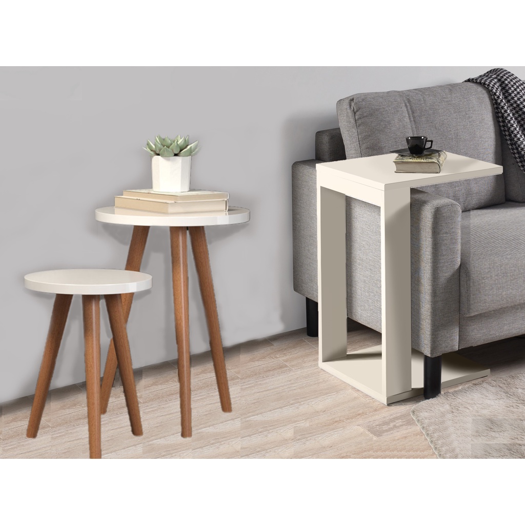 Jogo 3 Mesa Cabeceira Madeira Canto Tabriz Namur Off White Shopee