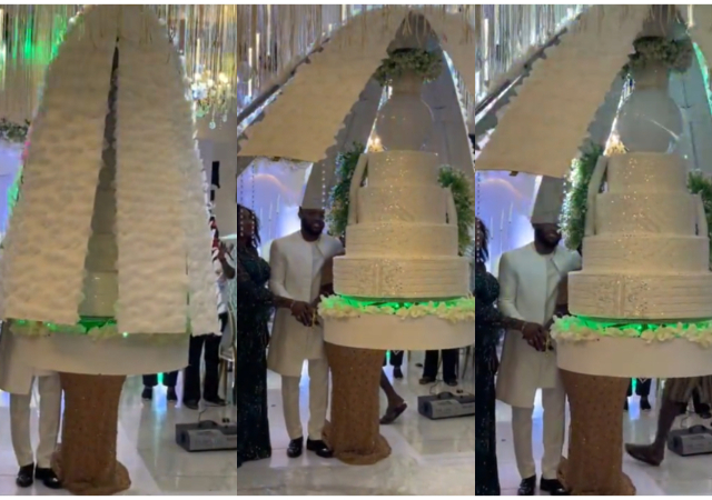 Watch video of wedding Cake descending from Heaven and opening its