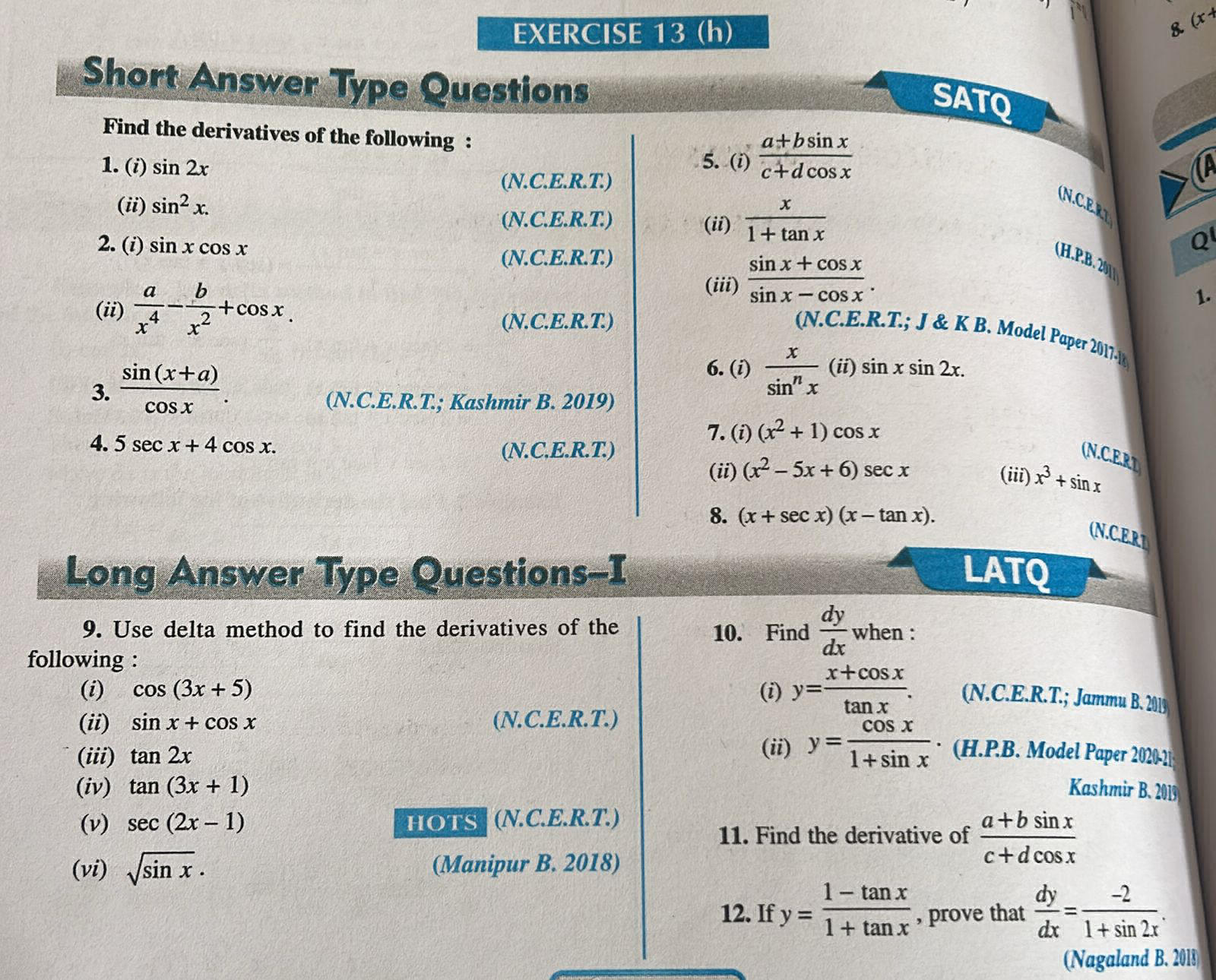 Find the derivatives of the following: 1 StudyX