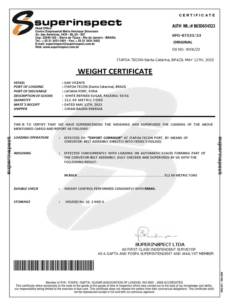 Photocopy of the weight certificate of the 5000 kg charge Download