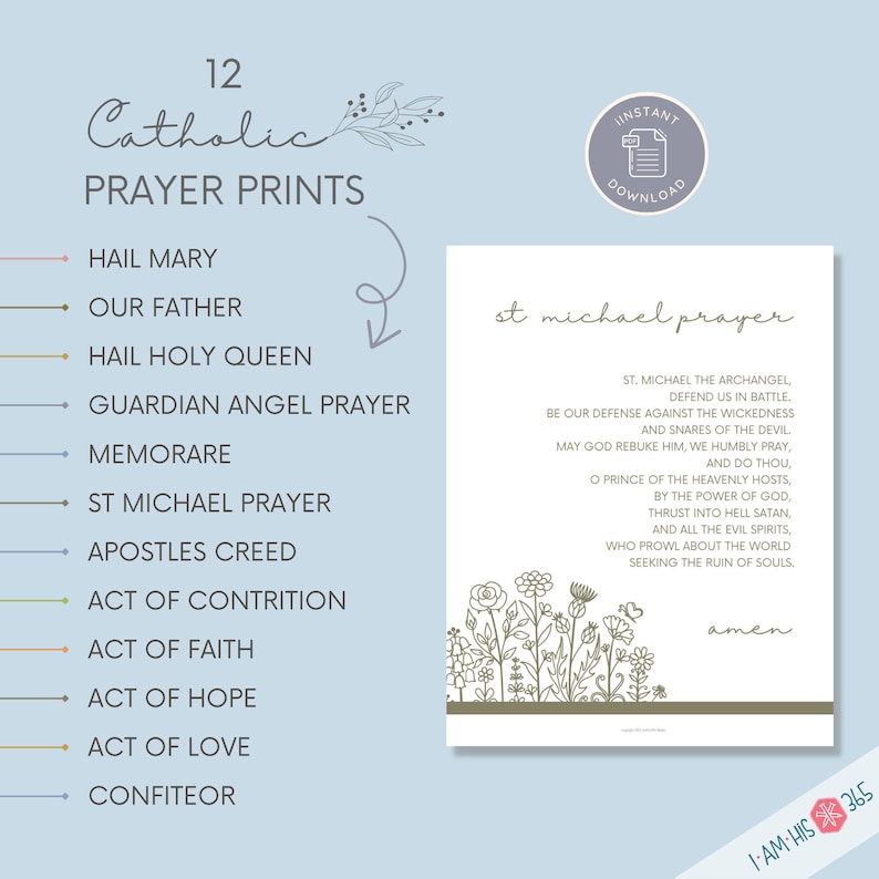 Catholic Prayer Print Set of 12 Catholic Prayer Printable Classroom