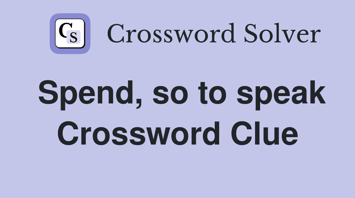 Spend so to speak Crossword Clue Answers Crossword Solver