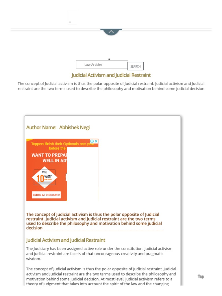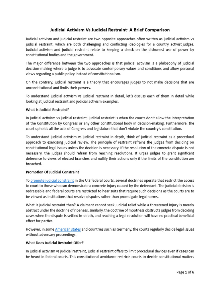 Judicial Activism Restraint PDF Judiciaries Supreme Court Of