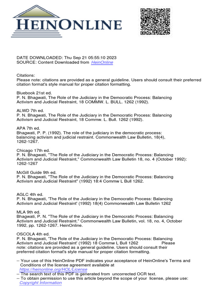 Balancing Activism Restraint Jus P N Bhagwati PDF Supreme Court