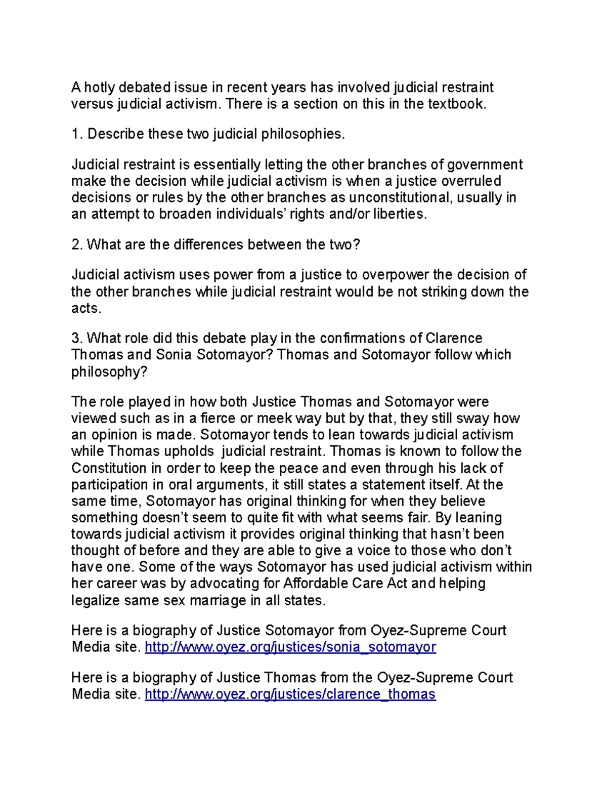 Judicial Branch Assignment: Activism vs Restraint in Supreme Court