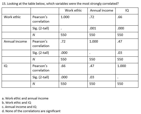 Solved 15 Looking at the table below which variables were Chegg com