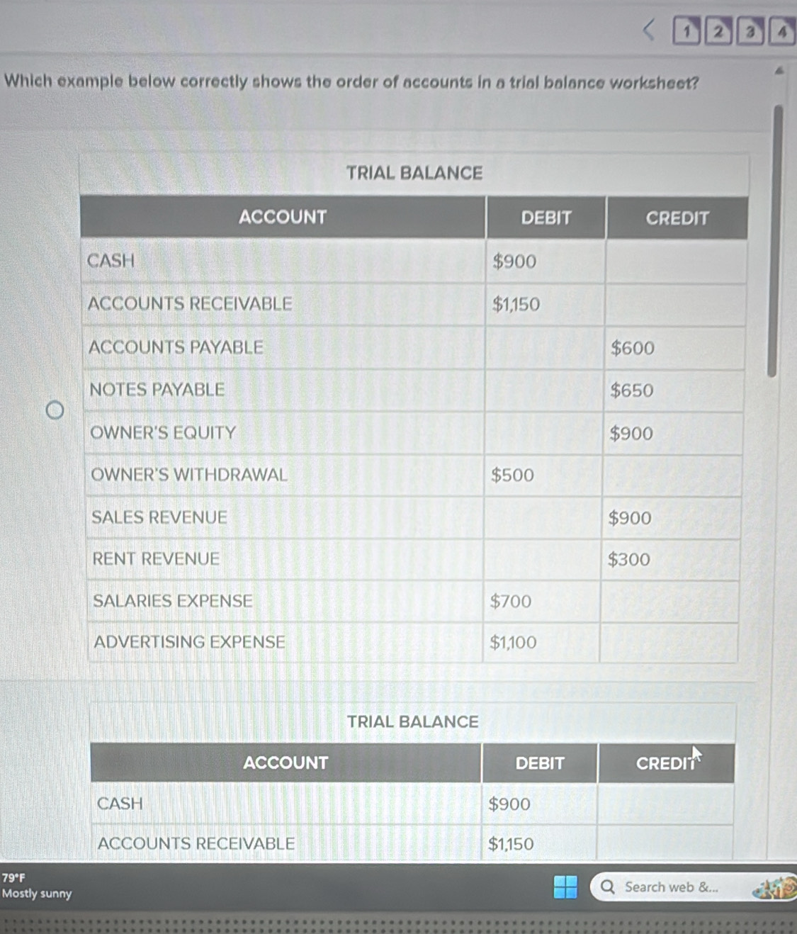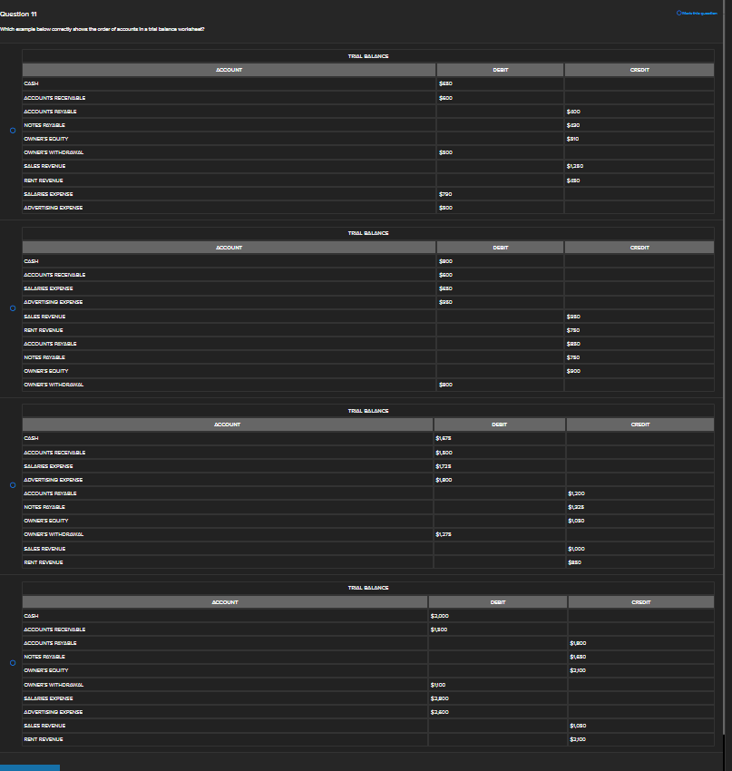 Solved Which image below correctly shows a trial balance worksheet