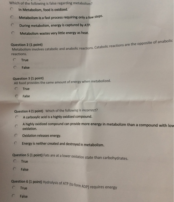 Solved Which of the following is false regarding metabolism? Chegg com