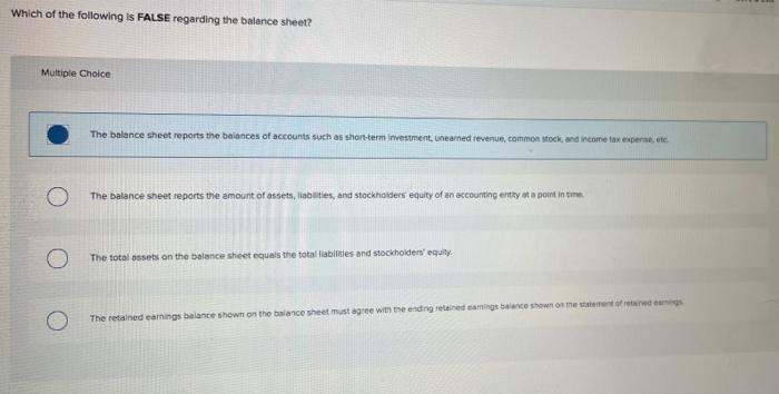 Solved Which of the following is FALSE regarding the balance Chegg com