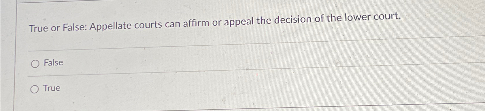 Solved True or False: Appellate courts can affirm or appeal Chegg com