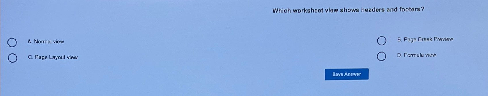 Solved: Which worksheet view shows headers footers and rulers? Normal