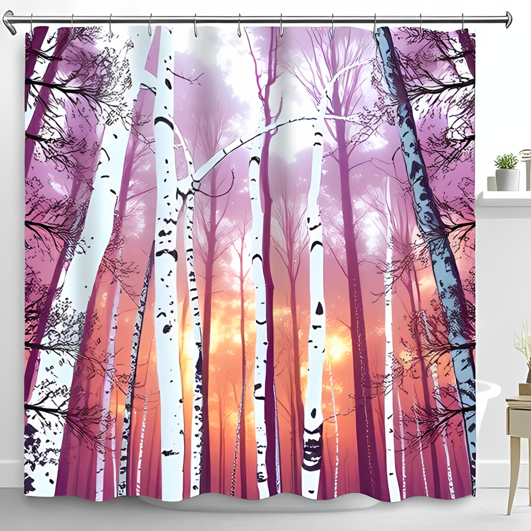 Birch Forest Sunset Shower Curtain Vibrant Nature Inspired Design