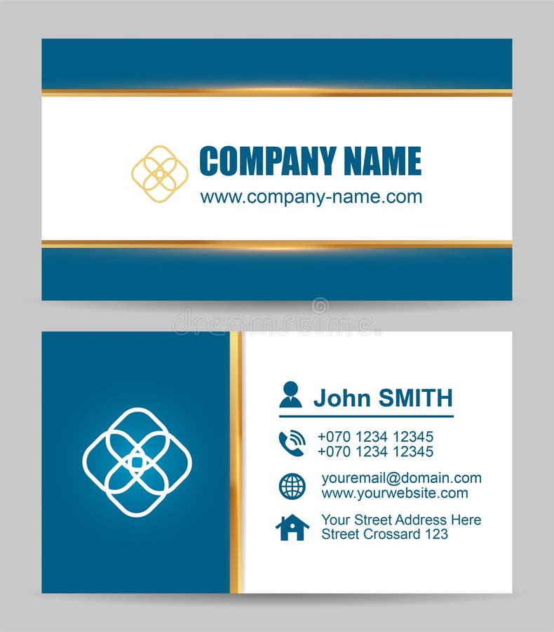Abstract Blue Gold and White Business Card Template with Abstract Logo